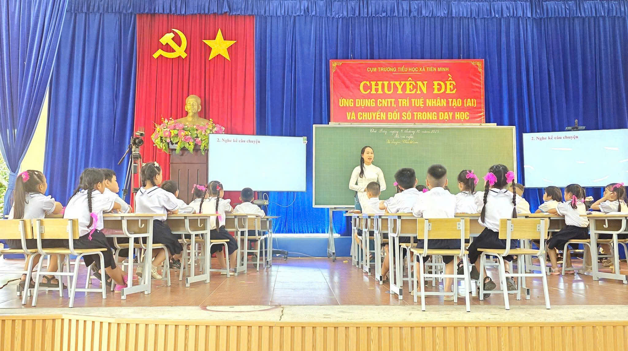 Chiều ngày 04/10/2025, tại hội trường Đảng ủy xã Tiên Minh, Cụm các trường Tiểu học trên địa bàn xã Tiên Minh tổ chức chuyên đề “Ứng dụng công nghệ thông tin, trí tuệ nhân tạo (AI) và chuyển đổi số trong dạy học”.
