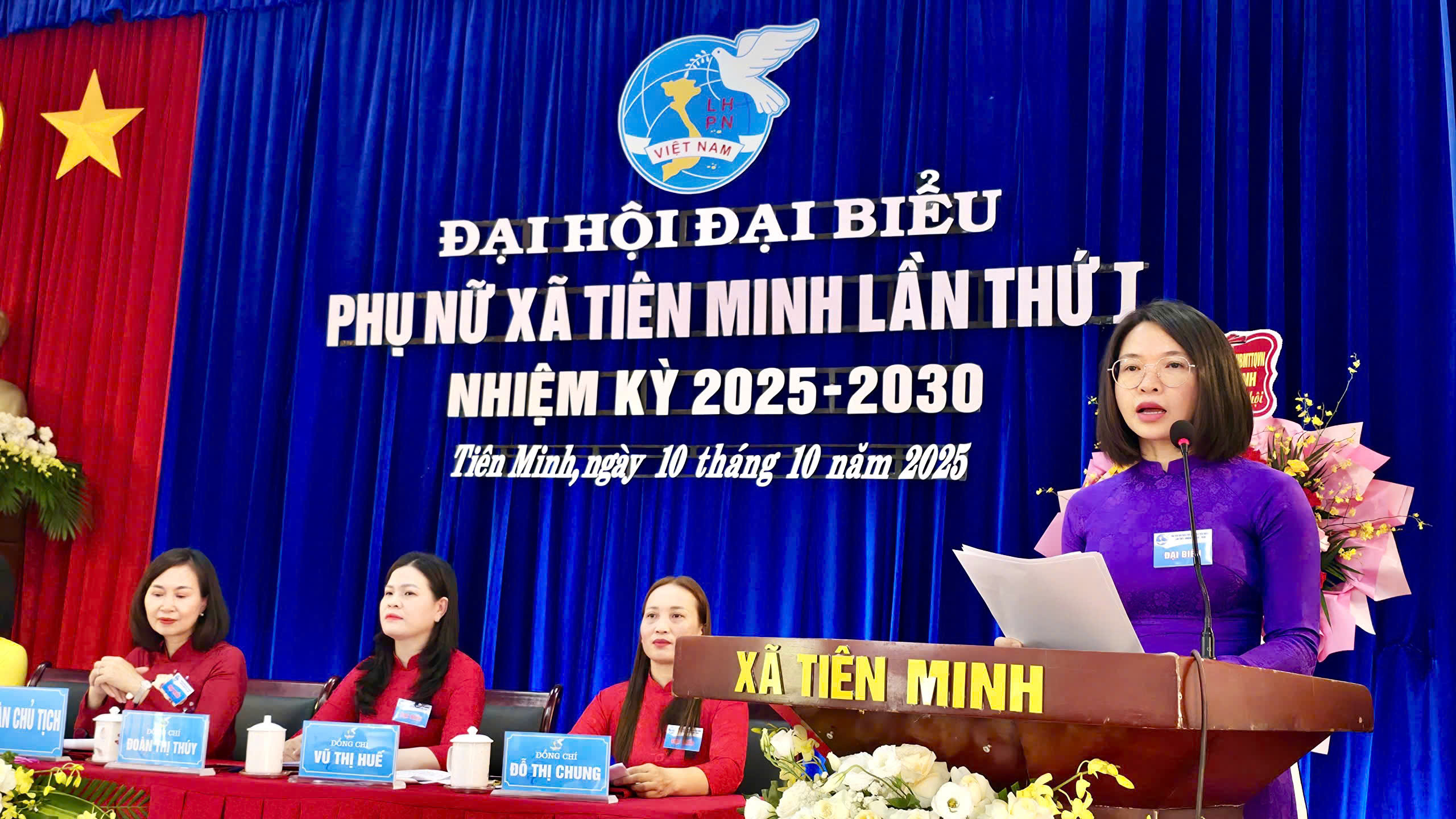 Phát biểu tại đại hội, lãnh đạo xã Tiên Minh và Hội Liên hiệp phụ nữ thành phố Hải Phòng chúc mừng, biểu dương, ghi nhận những kết quả tích cực của phụ nữ Tiên Minh trong giai đoạn vừa qua; đồng thời, định hướng, nhấn mạnh một số nhiệm vụ trọng tâm trong nhiệm kỳ 2025 - 2030 sau hợp nhất, sáp nhập, thực hiện chính quyền địa phương 2 cấp, triển khai hoạt động mới của Mặt trận tổ quốc và các tổ chức đoàn thể chính trị - xã hội.