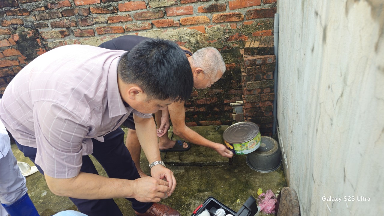 Đoàn công tác lấy mẫu kiểm tra tại một số hộ gia đình ở thôn 5 Mỹ Lộc