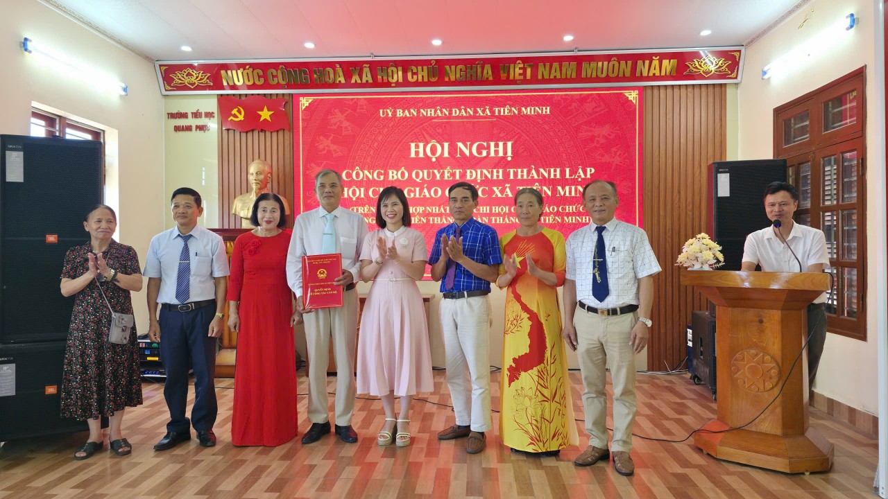 Tại hội nghị, đồng chí Mai Hùng Mạnh – Trưởng Phòng Văn hóa – Xã hội công bố quyết định của UBND xã về việc thành lập Hội Cựu giáo chức xã Tiên Minh trên cơ sở hợp nhất các Chi hội Cựu giáo chức Quang Phục, Toàn Thắng, Tiên Thắng và Tiên Minh. Theo Quyết định công nhận chức danh Chủ tịch Hội Cựu giáo chức xã Tiên Minh khóa I, nhiệm kỳ 2024-2029 đối với ông Đỗ Văn Hưng; công nhận Ban Chấp hành gồm 24 người; Ban Thường vụ gồm 7 người; Ban thường trực 5 người và Ban Kiểm tra gồm 5 người.