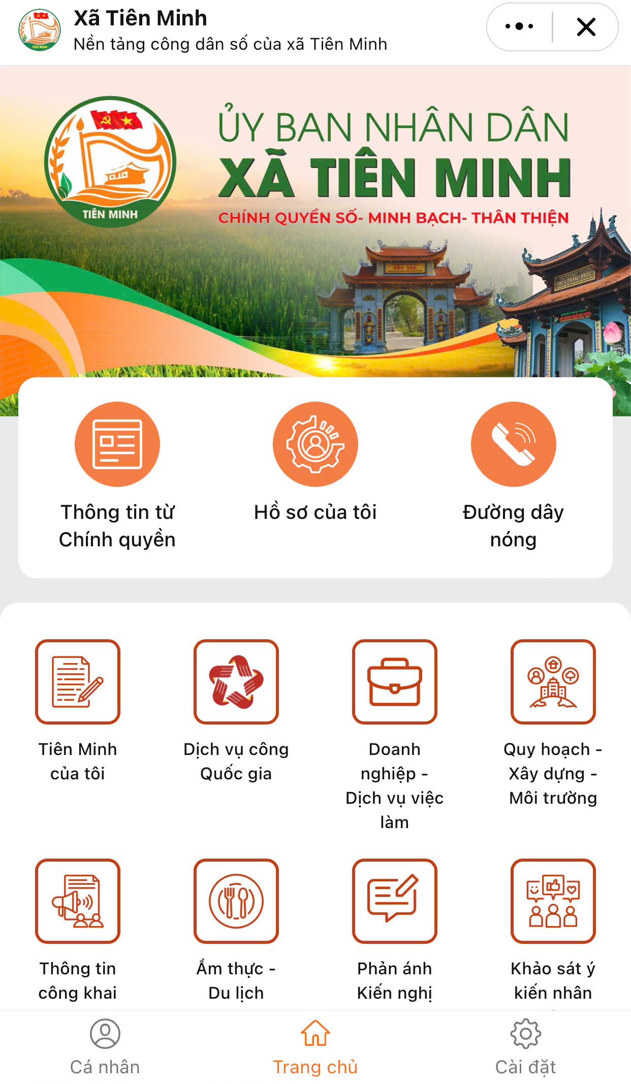 Đặc biệt địa phương triển khai và đưa vào vận hành ứng dụng Tiên Minh Smart và kênh Zalo OA ủy ban nhân dân xã Tiên Minh. Đây là bước đột phá quan trọng, mở ra kênh tương tác hiện đại, tiện ích, giúp chính quyền gần gũi, đồng hành cùng nhân dân một cách hiệu quả, nhanh chóng và thân thiện hơn.